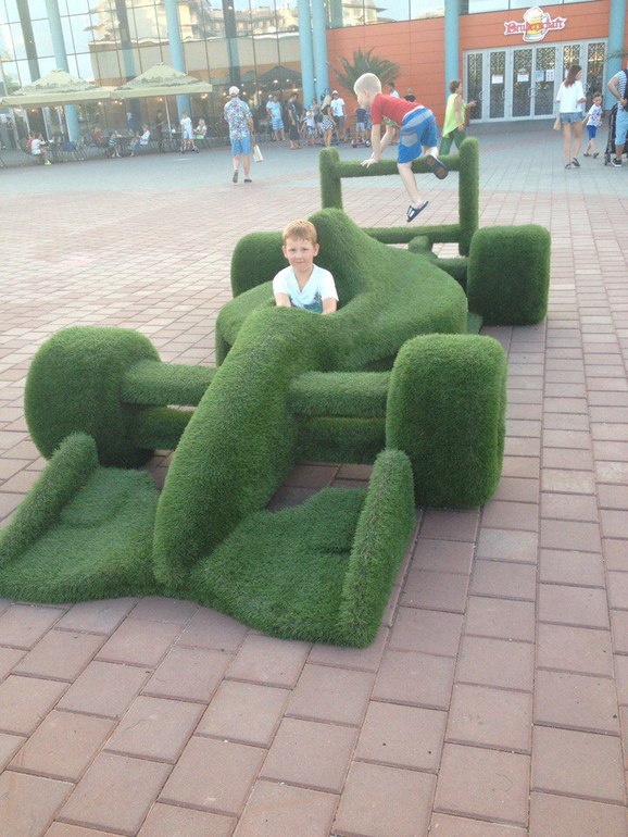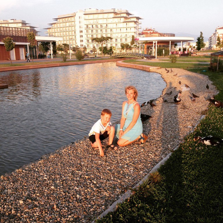 Территория большая, красивая, напоминает турецкие отели, есть речка-прудик с рыбками, также там живут птички, которых можно покормить, детям очень интересно. Растительности еще немного, поэтому опять же в жару ходить тяжело. На территории много кафе, ресторанов, бассейны по одному на 2 корпуса, для детей были батуты (платно). Днем и вечером проходит анимация около 9,10 корпусов, они административные. Порадовали хорошие, новые детские площадки, причем их было много, в этом плане Бридж хуже, там она всего одна и на ней очень много детей.