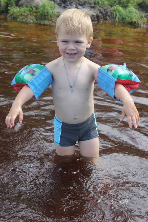 Темка у нас личность абсолютно самостоятельная. Абсолютно, не терпящая помощи. Даже в воду без рук и только сам.