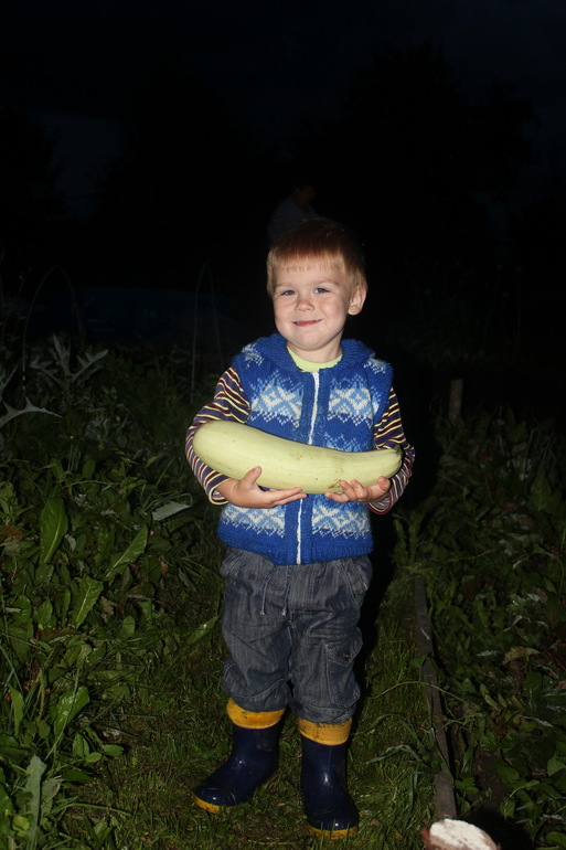 За урожаем ходим на огород даже по вечерам. Оладушки на завтрак из кабачка, как вкусненько.