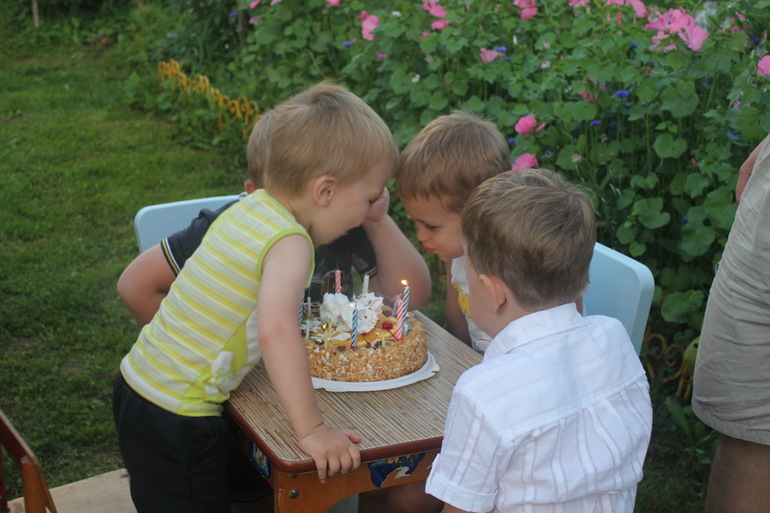 Детишки с нетерпением ждали задувания свечей и самого тортика...