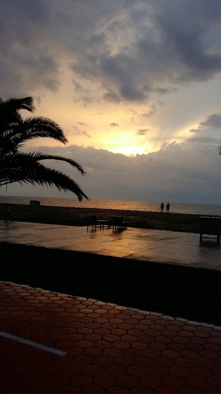 Поезд идет 4.5-5 часов. Мы живем не в старом городе, там пляж битком. От нашего дома до пляжа 200 метров, туда и ходили, народу немного, но бывает вода не очень чистая, но без пакетов и всего такого, просто прибивает кусочки дерева, тину, водоросли, расходится за пару часов обычно. В районе Гонио, Квариати, Сарпи море, конечно чище, но нам туда далеко ездить. Многие там живут, и ездят гулять в Батуми, но мы без машины там, мне удобно, когда все под рукой.