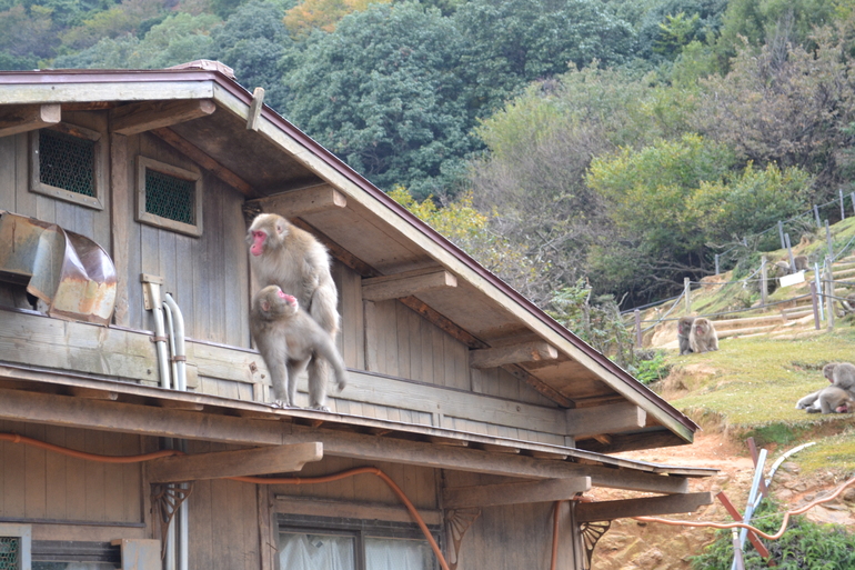 Японские макаки - это самые северные обезьяны в мире. Ходят они там привольно.
