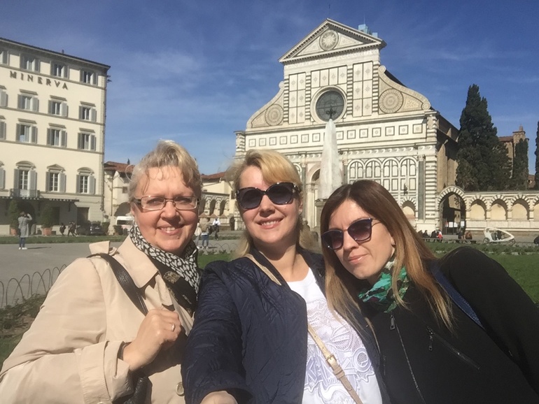 На следующий день утром нам предстояло встретить мою маму, которая приезжала к нам на день из Неаполя. В 9 утра улицы были полупустые. Встретили мамулю, с которой не виделись с Милана в декабре. Мама привезла нам сумку итальянских вкусняшек - салями, прошутто, Просеко, сладости, оливки и моцареллу. На да, мы ж голодные))) Оставили все в отеле и пошли гулять Хотели идти по маршруту путеводителя, предварительно закаченного в телефон (izi.Trevel - часто пользуюсь им в поездках, т.к. программа позволяет использовать геолокацию без подключенного инета), но ступила и не подгрузила карту перед выходом. Поэтому оставалось только гулять самим, наслаждаясь красотой города!