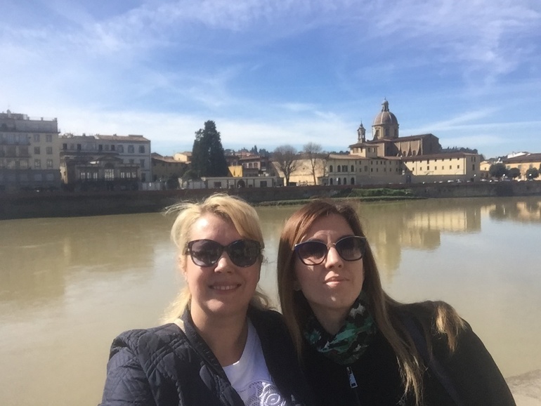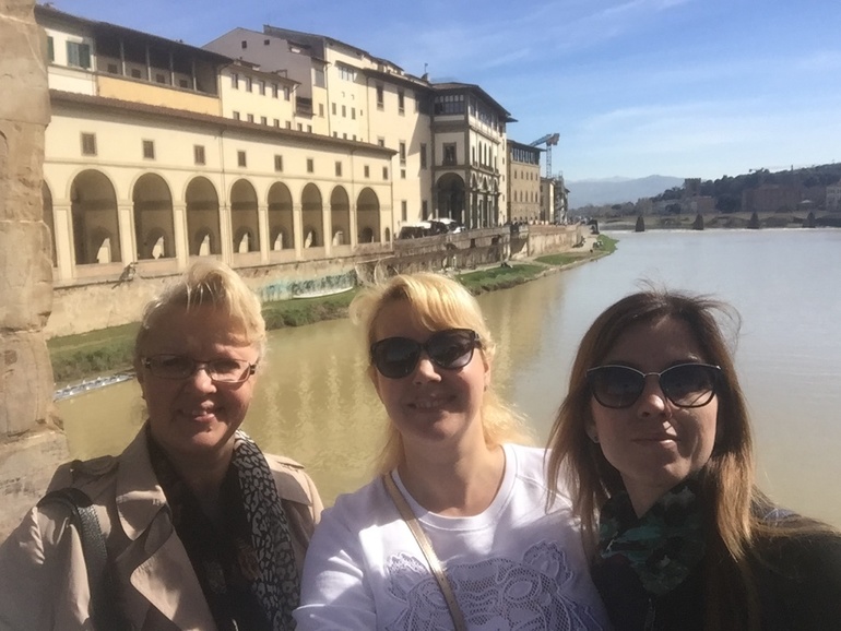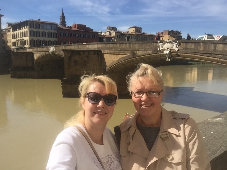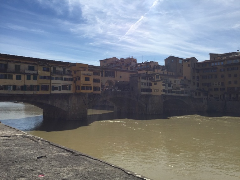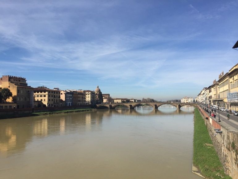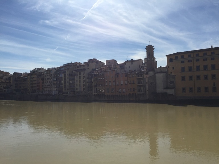 Дошли до реки Арно, вода после дождей была мутная, но виды все равно красивые) Просто обалдеваешь, что и век, и два, и три, и пять все выглядело так же! Каждое здание в центре построено в 14-15-16-17 веках! некоторым 6 веков! И они стоят, там живут люди, воспитывают так же детей!