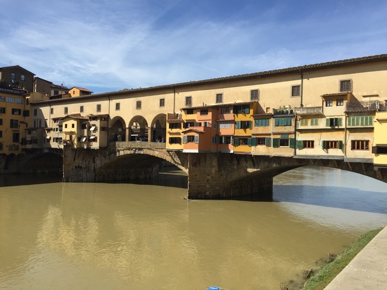 Знаменитый мост Понте-Веккьо, на котором сейчас находятся ювелирные магазинчики флорентийских мастеров, а на 2-3 этажах- жилые квартиры! А в средневековье здесь были мясные лавки.