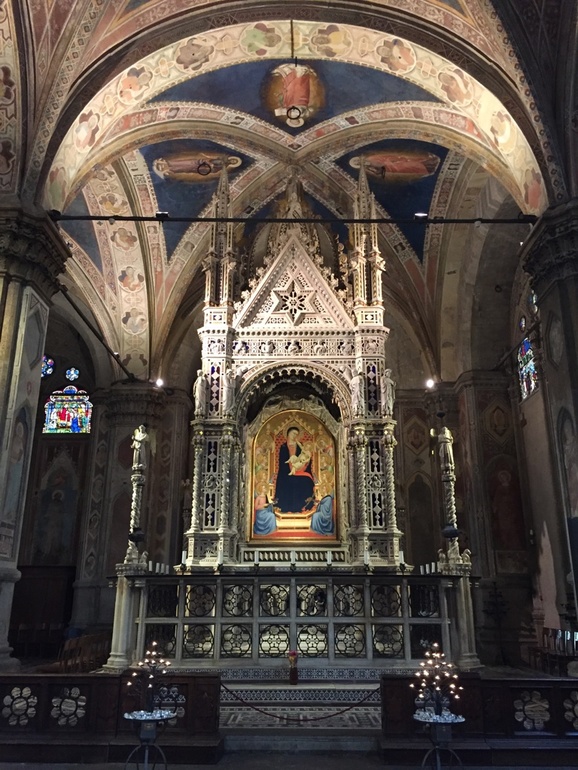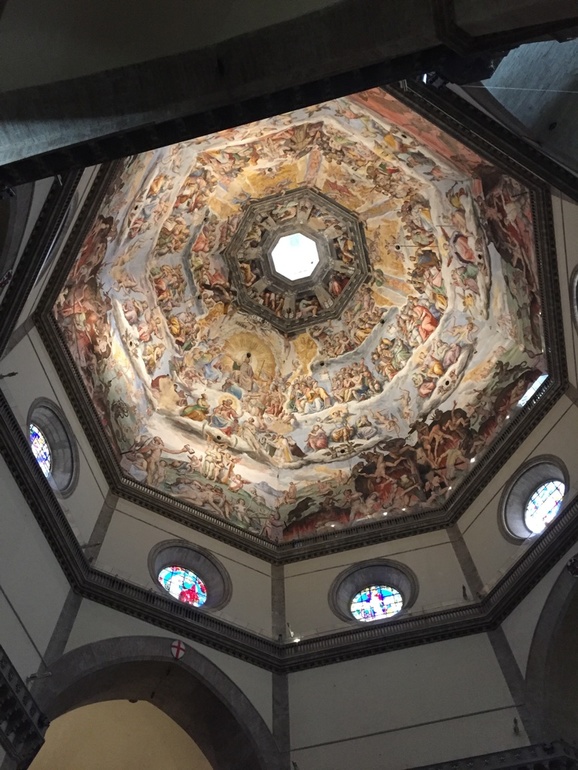 Вернулись к Дуомо, купили билет для его посещения (входит 5 мест, стоит 15 евро, действует 2 дня). Зашли внутрь Дуомо. Внутри особой роскоши нет (католических соборов мы видели уже очень много), кроме шикарного расписанного купола: