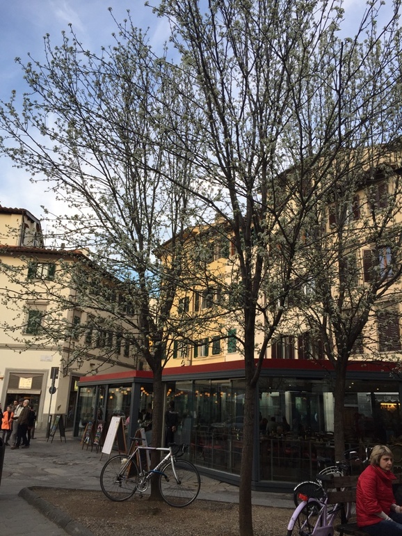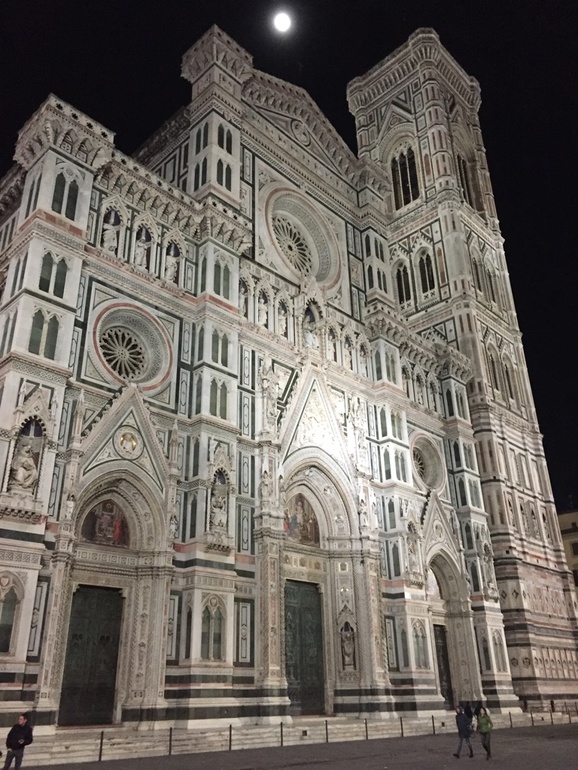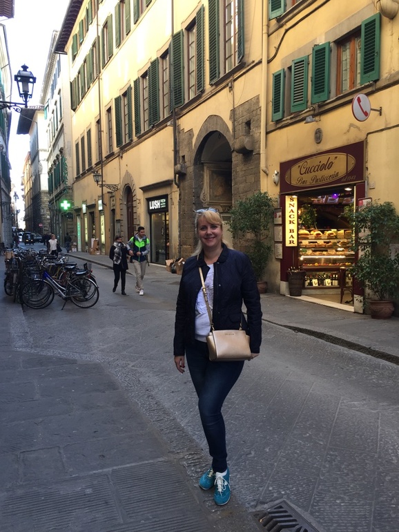 Вокзал был близко от нашего отеля, вернулись часов в 6 вечера и рухнули) Но долго отдыхать, когда у тебя всего 4 дня в Италии - это не про нас) Вечером пошли снова гулять по ночной Флоренции. Ужинать не хотелось, зашли попили кофе с пироженками в соседний отель - и всего около 8 евро за 2 чашки капучино и 2 пирожных) А вот в Вене найти вечером кондитерскую было нереально! все в 7 закрывалось!