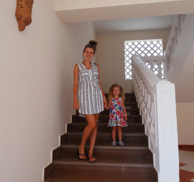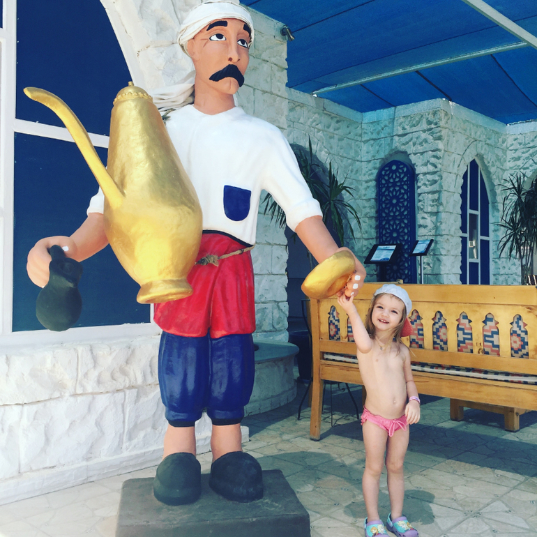 Перелет без проблем,даже описывать не буду.Но в этот раз у нас минимализирован багаж,на всех один чемодан и одна сумка в ручную кладь!Обычно у нас 2 чемодана,рюкзак,сумка в ручную и коляска)Какой кайф лететь на легке,но этот вариант прокатил только один раз,потому что страна такая(везти оттуда нечего),в следующий раз по-старинке,чемоданы,коляска))Прилетели рано,сходили на завтрак и сразу нас заселили.Просили номер на втором этаже,такой и получили.Заселили нас в первый корпус,прямо возле главного ресторана,до моря мы шли через всю территорию,что нисколько не смущало...прогулки наше все!С погодой очень повезло,на протяжении двух недель была жара+30,только в один день был сильнейший ветер,даже пришлось достать теплые вещи.Море для меня холодное было,но все равно заставляла себя зайти и искупаться!На территории отеля три бассейна,один для самых маленьких(с горками и ледяной водой),ни разу там не были;второй только для взрослых(лежали одни немцы);третий с аквапарком и детской зоной(мелкий и с подогревом),в нем зависали пару дней.Соню было не вытянуть).Мы могли пользоваться территорией соседнего отеля Мамлюк,вот там бассейн нам больше понравился и судя по количеству семей с детьми именно из нашего отеля,мы такие не одни.