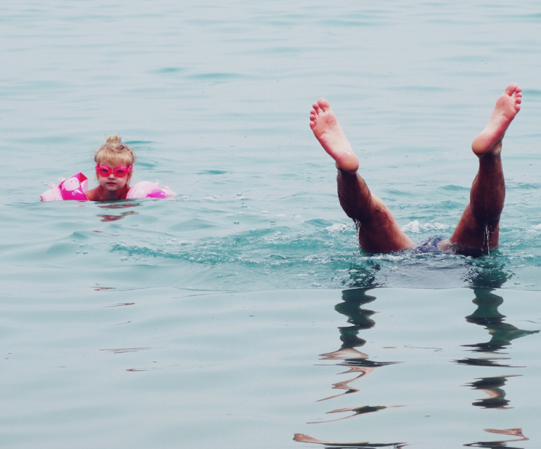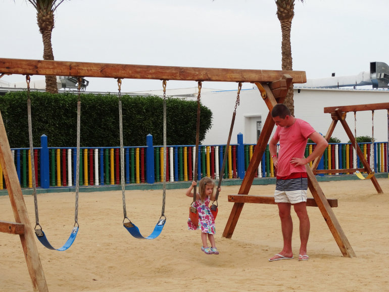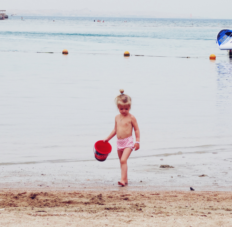С папой строила песочные замки,башни,домики для крабов,этим она могла заниматься вплоть до обеда.В такие моменты сразу вспоминался прошлогодний отдых,когда она сама играть не могла и все время сидела с нами или куда-то тянула,а тут просто ходила к морю и набирала воду,приносила к лежакам и переливала в ведро)хоть какое-то время можно было спокойно полежать.