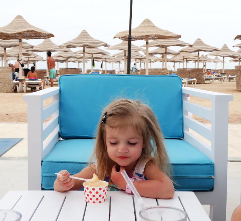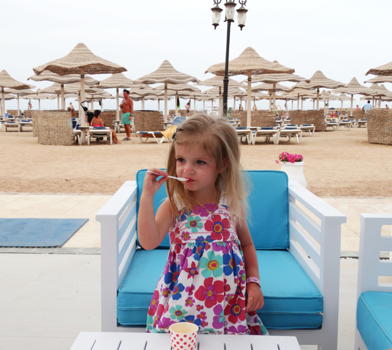 Омлеты какие-то недоделанные(единственная страна,где я не могла их есть),каши для детей(меня чуть не вырвало от внешнего вида,а потом еще и от вкуса),понятное дело,что Софа даже не притронулась.Кофе ужасный,горький даже латте и капучино. Соня на завтрак выпивала пол стакана молока или сока,даже хлопья какие-то безвкусные,фу.Обед:два вида супа(1-суп-пюре,2-суп с овощами),гарниры никакие(ела только рис),курица и говядина и все,по одному виду горячего,остальное мешанина из овощей или что-то их национальное.Ужин такой же.Начали давать после обеда Соне картошку фри просто потому,что она ничего не ела...в определенное время ели мороженко,шаурму и салатики,хоть что-то.За это время я не набрала вес вообще.Кто хочет похудеть,срочно в Египет.