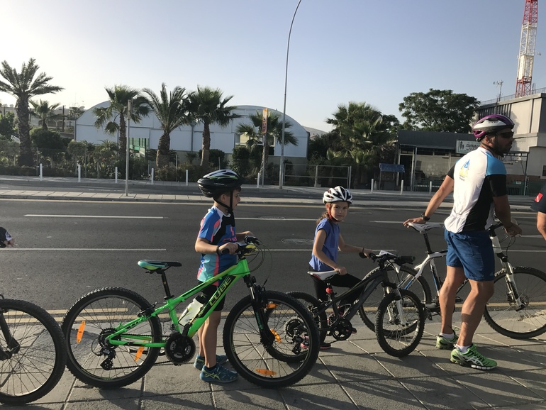 Дочка теперь триатлоном занимается. А т.к. остальные мальчишки на 2-3 года старше, то мы наверстываем упущенное с разгоном, разворотами и торможением! Дочь катает, мама бегает рядом. Но скоро буду рядом на веле катать, уже не поспеваю!