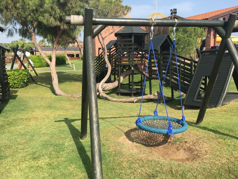Прилетели мы 29го мая, нас заселили в фэмили (повезло, что в ближайший, рядом с рестораном). Номер неплохой,но рядом с помещением, где уборщицы хранят свое добро, выход из двух комнат на открытую терассу. В номере сейф, ежедневно пополняемый мини-бар бесплатны. Для взрослых 2 халата, тапочки. Ну и шампуни/гели/кондиционеры/лосьоны для тела, одноразовые пилочки, шапочки д/волос. Ватные палочки и диски есть, но мне не всегда хватало.Утюга и гладильной доски нет, попросить принести тоже нельзя!Типа, в целях пожарной безопасности. Учитывайте это, так как услуги химчистки/прачечной и глажка платные и ценник конский. В номере ванна со стеклянной перегородкой, но пользоваться ею реально только как душем, вода набирается оочень долго, дно ванны скользкое, будьте осторожны. Рядом с нашим корпусом были футбольная и баскетбольная площадки. Мяч можно попросить у девочек на гест-релейшен.