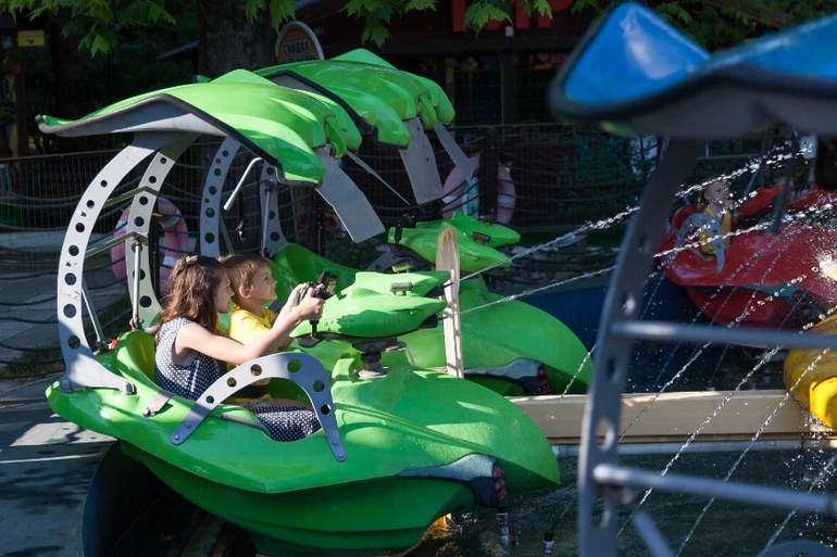 Потом мы с детьми пошли развлекаться - кататься на аттракционах и прыгать на батуте.