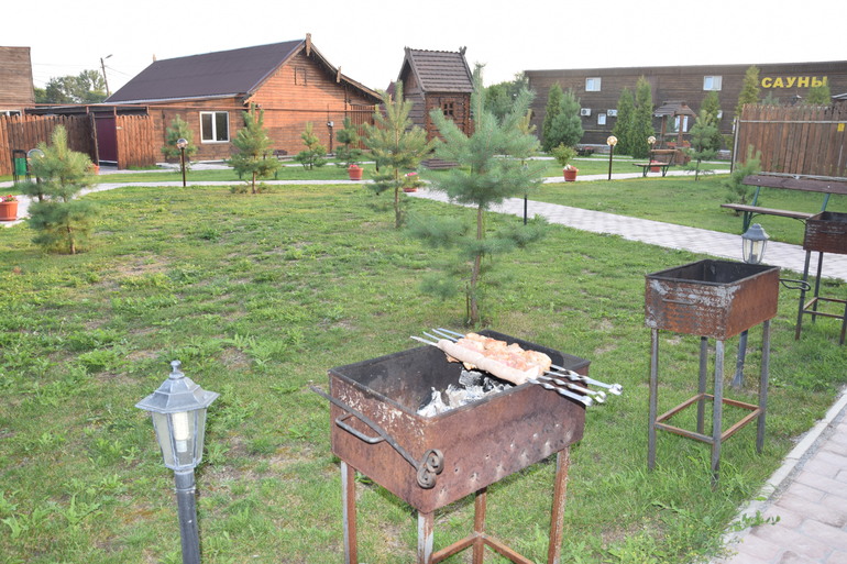 Территория неплохая, цветочки-газончик,деревца, домики