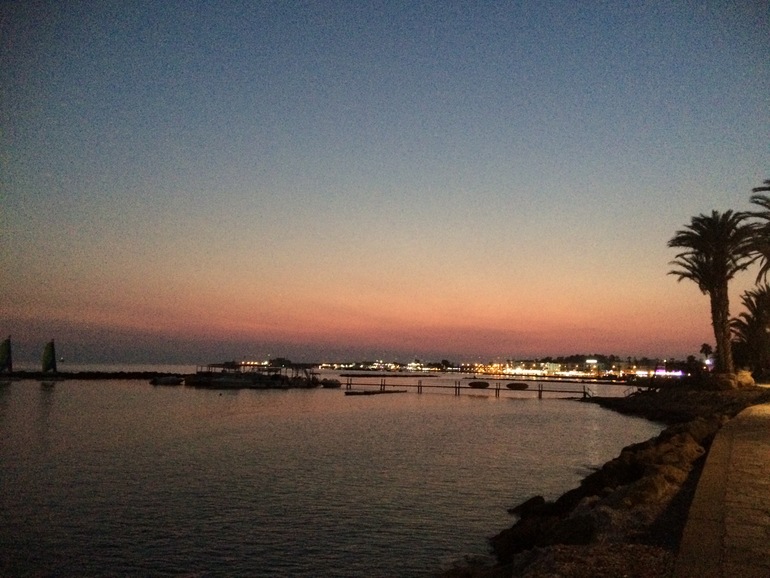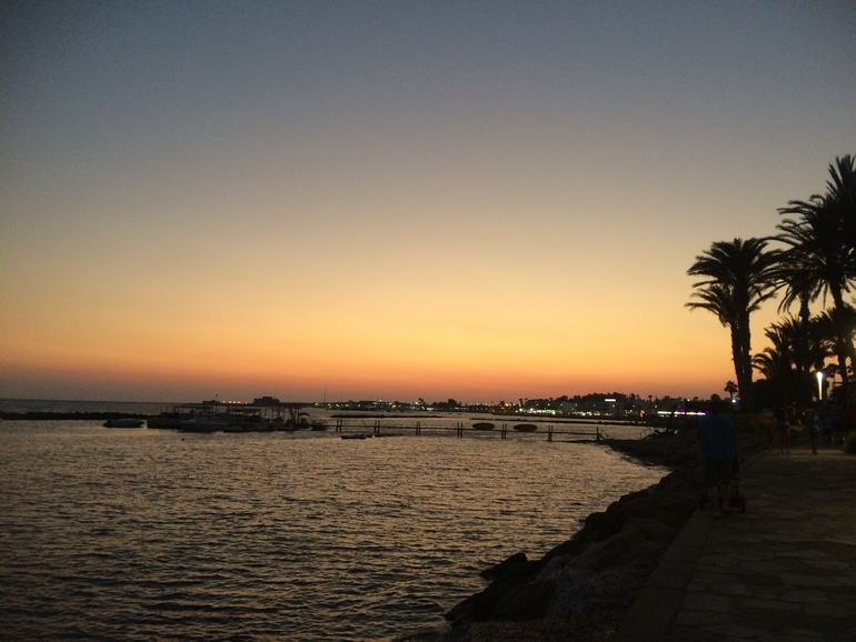 От Aloe Hotel до порта Пафоса - 600м идти очень приятно по набережной. И быстро. Нам понравилось гулять с коляской каждый вечер.