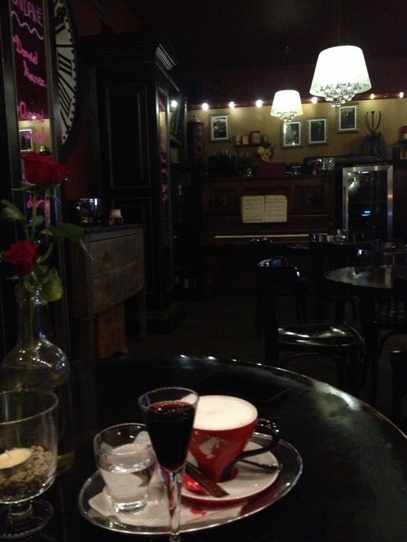 Пока бродила- стемнело. Завернула в кафешку на кофе с ликером.