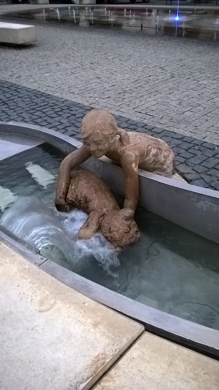 Прикольный фонтан на площади. Так и не поняла кого топит в фонтане эта девочка?
