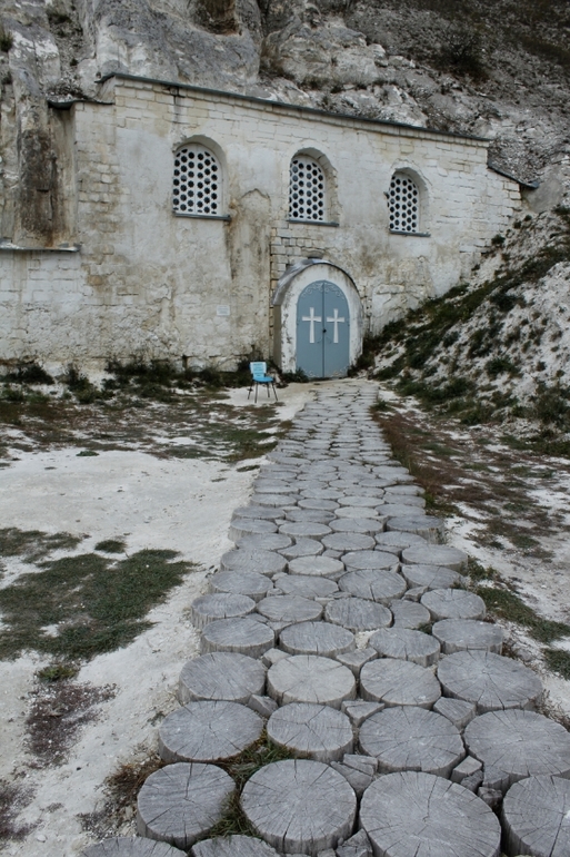 Лестница ведет к старинному меловому пещерному храму, в котором и проводятся экскурсии