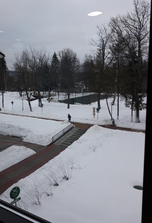 На улице были спортивные площадки, небольшая тюбинговая трасса (но из-за погоды (таял снег) уже пользоваться ей было нельзя, детская площадка и небольшая территория для прогулок.