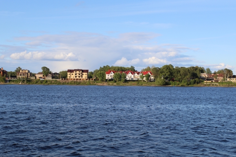 красиво... Ярославль очень зеленый с воды, получилось достойное завершение второго дня нашего пребывания)