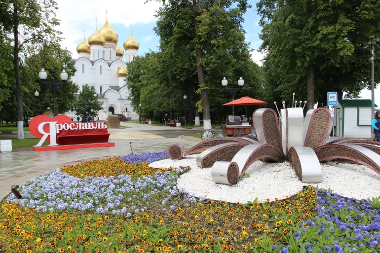 Рядом с Собором, парк Стрелка, на месте слияния двух рек - Волга и Которосль