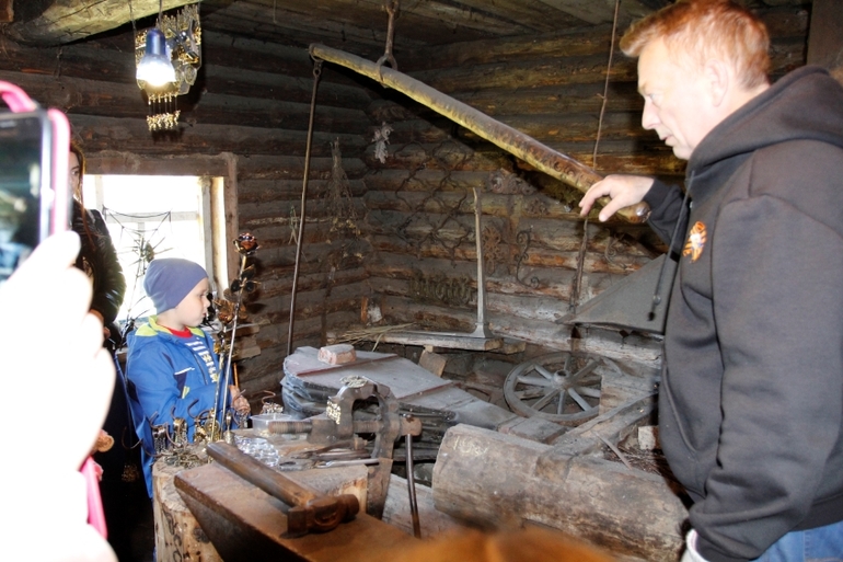Мы побывали в гостях у кузнеца, где при нас он ковал гвоздь