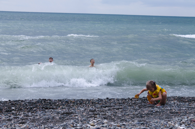 Как мы отдохнули!(рассказы и фото)После насыщенно-экскурсионного отдыха, в Батуми мы хотели просто валяться на море и есть мороженое )) Однако, нашим планам не суждено было сбыться. Как только мы приехали, изменилась погода- стало пасмурно, похолодало, море начало штормить. В первый день мы на пляж, все же пришли, но по берегу курсировали спасатели и заходить в воду не разрешали из-за волн. Дети плескались у кромки воды в пенных брызгах. Ну а со второго дня, и вовсе, зарядили дожди и ни о каком купании речи быть не могло.