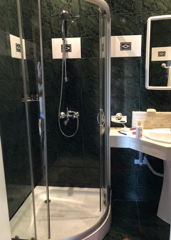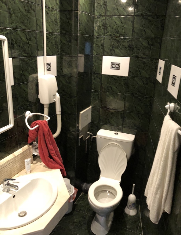 СУ с хорошей душевой,перебоев вводы нет, из гигиен. средств 2 кусочка мыла