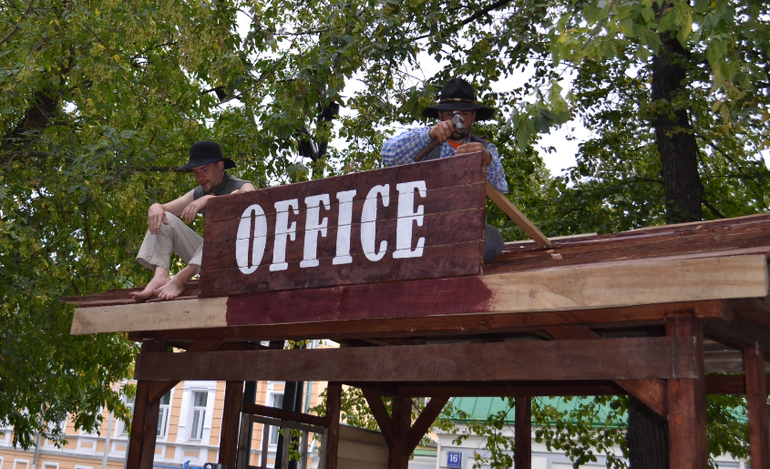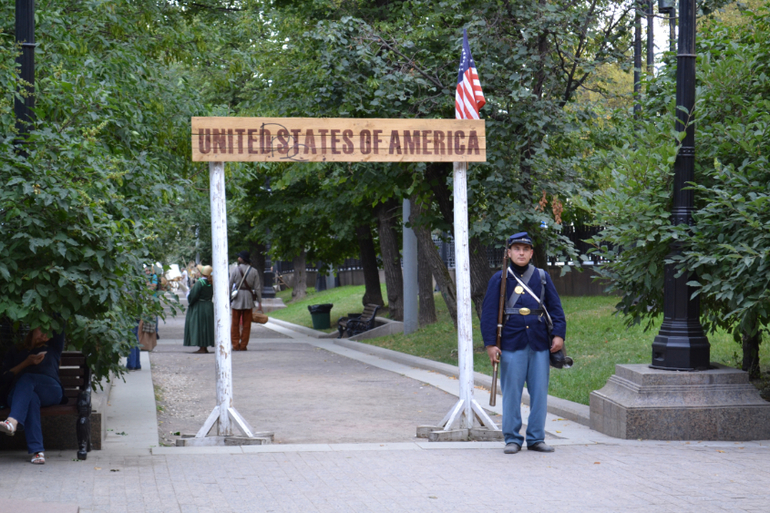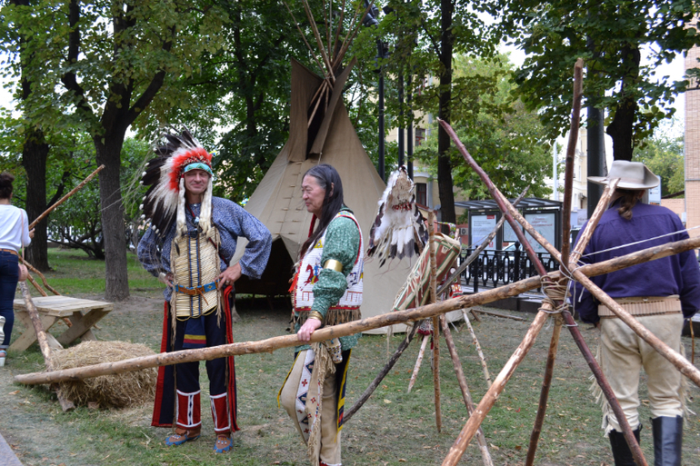 Надо сказать, что пока мы не добрались до Америки, почти на каждом стенде были иностранные участники в национальных костюмах. А вот "американцы" видимо эмигранты русские))) Шучу, конечно. Это просто русские актеры. А жаль. Я больше всего хотела попасть на эту часть фестиваля. Оказалось, площадка еще достраивалась... и здесь было скучнее и тоскливее всего.
