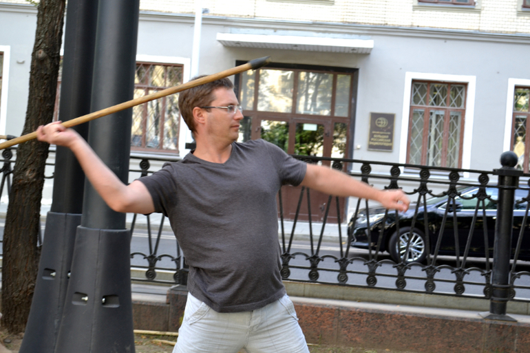 Муж стрелял из лука, но у нас это запечатлено на видео. Зато есть фото тренера)))