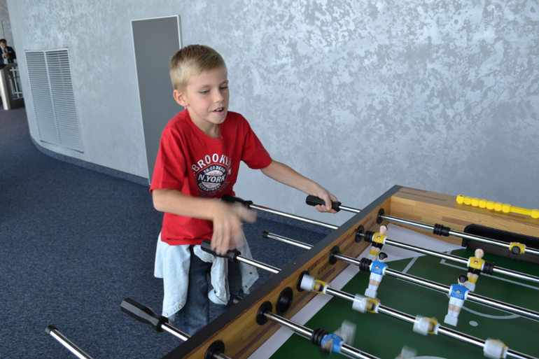 Пацаны порубились с настольный футбол.