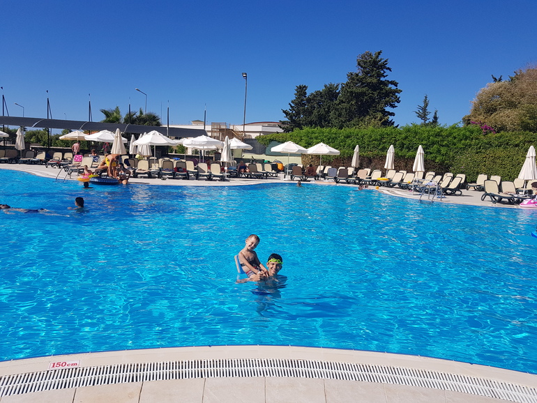 Дети из бассейнов не вылезали, даже на море не хотели ходить. Приходилось уговаривать: сначала на море сходим, потом в бассейн.