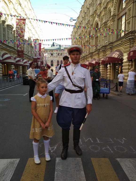 вышли на улицу, а там еще интереснее! через дорогу детей переводит милиционер, почти дядя степа