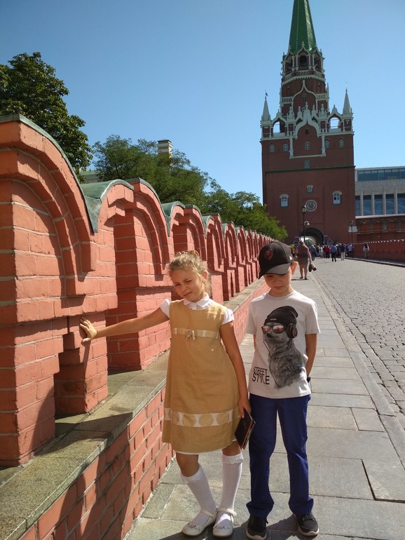 телефоны не отбирают. так что сумки мы не сдавали в камеру. очередь в мавзолей идет быстро. так быстро, что мы не успели даже рассказать толком, кто такой ленин. а уже пошли вдоль захоронений в кремлевской стене