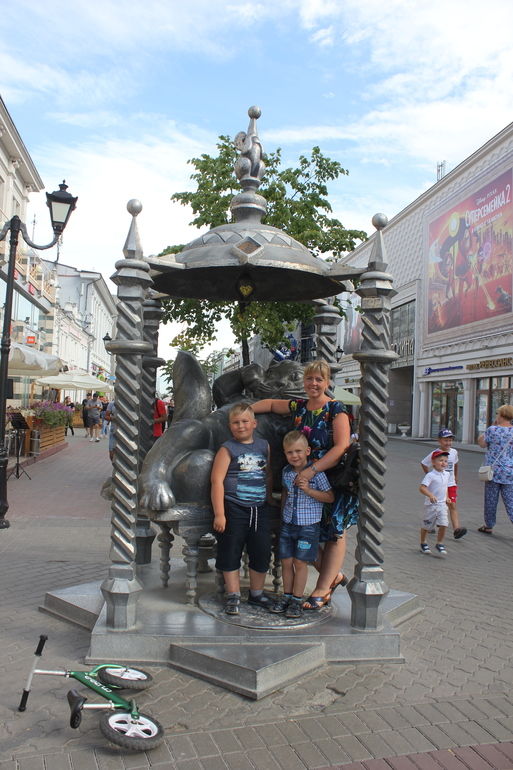 Знаменитый котик... опять рассказывать про каждую скульптуру или памятник подробно не буду... в двух словах Екатерина 2 очень удивилась отсутствию крыс и мышей и ей рассказали о казанских котах, тогда специально для нее отловили котов которых она забрала в Петербург и с тех пор крысы исчезли, а потомки тех самых казанских котов до сих пор живут в Эрмитаже.К слову парковки около улицы Баумана все платные, 50 рублей в час. Поставить машину в не платных мест практически невозможно.