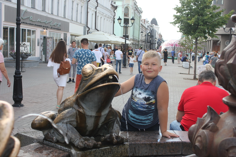 Фонтан "Лягушки", именно здесь все загадывают желания и бросают монетки на счастье. мужик рядом с Темиком не в тему, но он так упорно лез к бедной лягушке и все же попал в наш кадр..