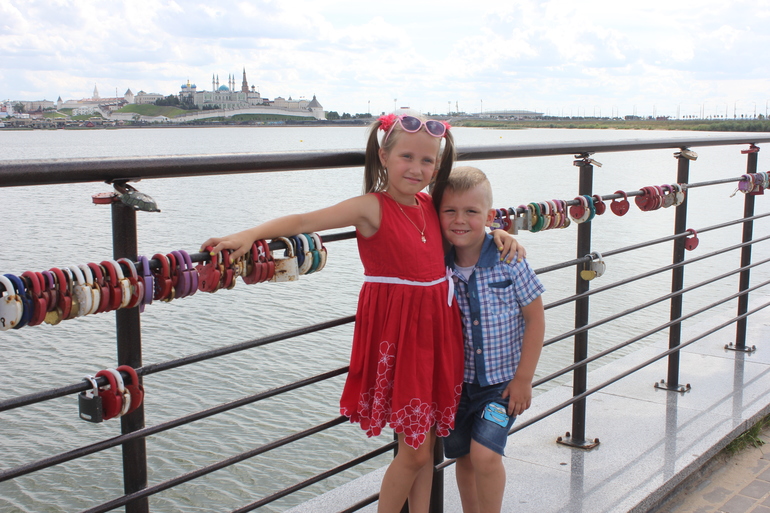 потом побегали по водичке и дальше по плану было колесо обезрения. их там два. на одном решилил покататься днем, а на втором посмотреть вечернюю Казань.
