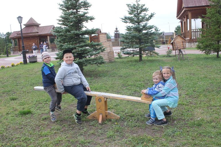 Больше всего детям понравилось в амбарах. как сказал Славик:"Вот он антистресс!" Огромный амбар с большим количеством зерна, там и пшеница и гречиха и рожь, и овес и кукуруза. Все потрогали, все рассмотрели, а дальше ребята начали усердно перемалывать зерно в муку. Вот тут то мы и застряли на долгие 30 минут. Мы сидели в беседке, а они все вместе мололи и мололи.