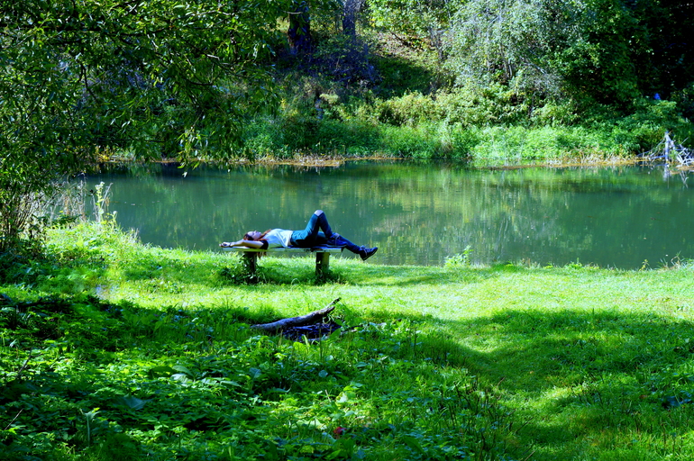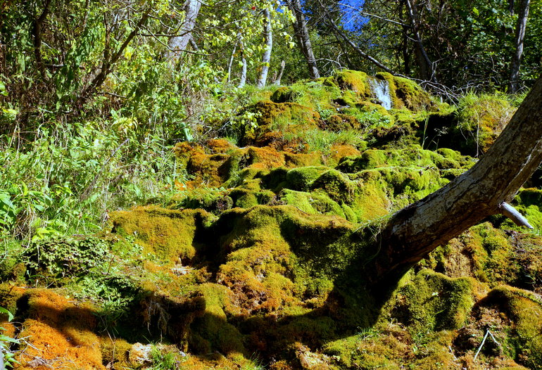 Мхом покрыты все уступы холма, вода в ручьях до рези в глазах прозрачная, ярко светит солнце, тепло, вокруг порхают бабочки. Просто наслаждение!