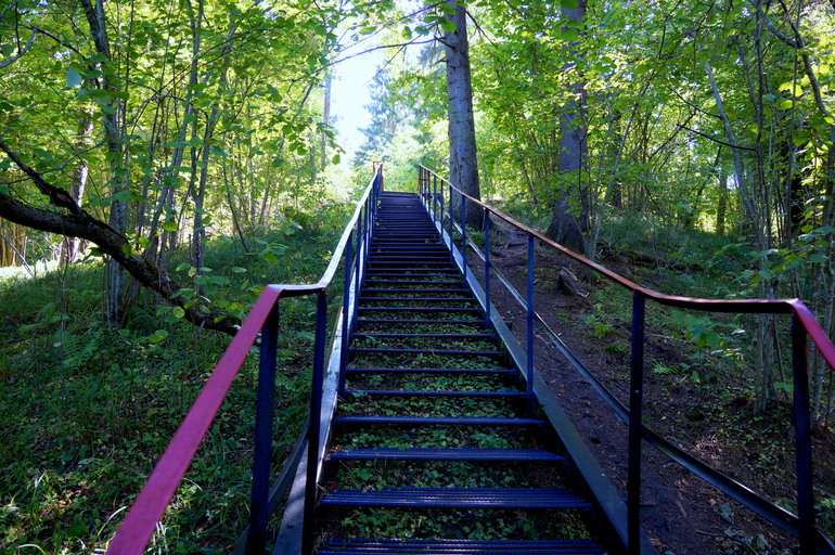 Пройдя через весь дачный поселок, мы очутились в лесу и вниз к реке Протве спустились по удобной длинной лестнице.