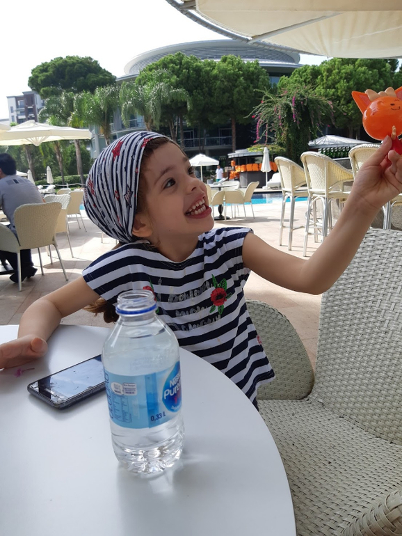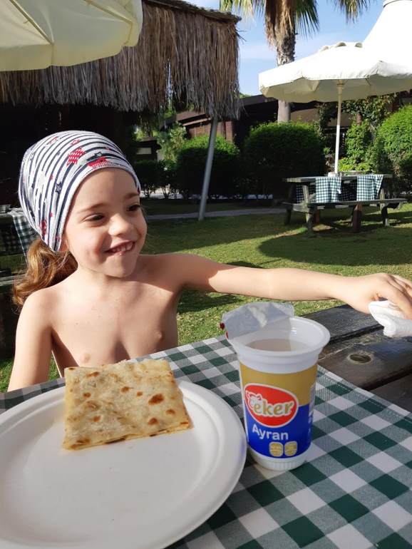 Соня- чудо деть! Она была вся на эмоциях..Солнце, море, орешки, айран, лепешки... Все это ее радовало до безумия:)