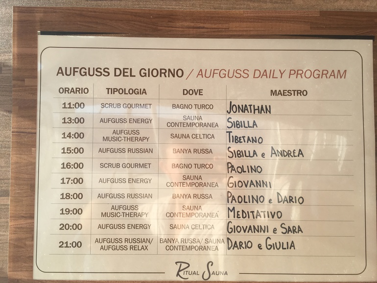 Что такое «Ароматные шоу» (Aufguss - по-немецки, Gettata - по-итальянски) - это целый представления в сауне, когда все люди сидят, а банщики под музыку бросают на раскалённые камни различные ароматы и разгоняют его полотенцами по всей сауне. Этот театр и ритуал одновременно! Если раньше «Ароматные шоу» проводились только в «Современной» и «Кельтской» саунах, то теперь проводят их и в новой «Русской Бане»