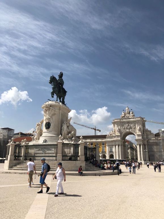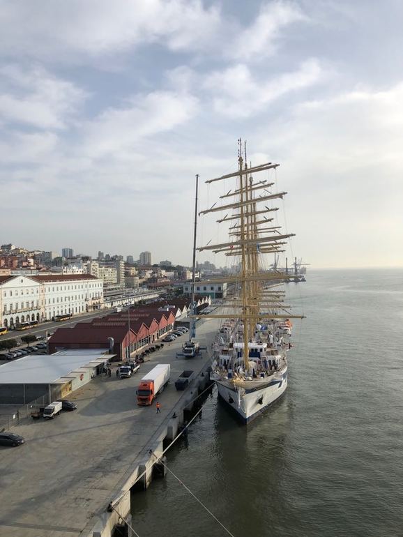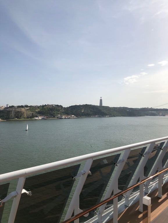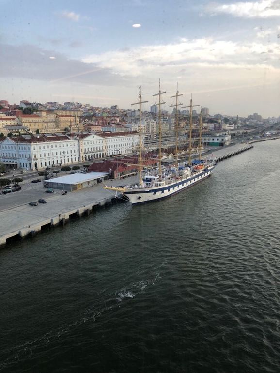 23 апреля 2018 года мы приплыли в Лиссабон, столицу Португалии. Порт располагается практически в центре города, в пешей доступности от Площади Коммерции. Поэтому утренние виды с балкона нашей каюты были прекрасными) Швартуемся: