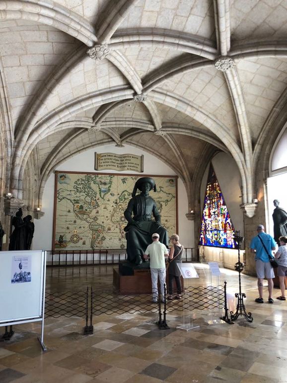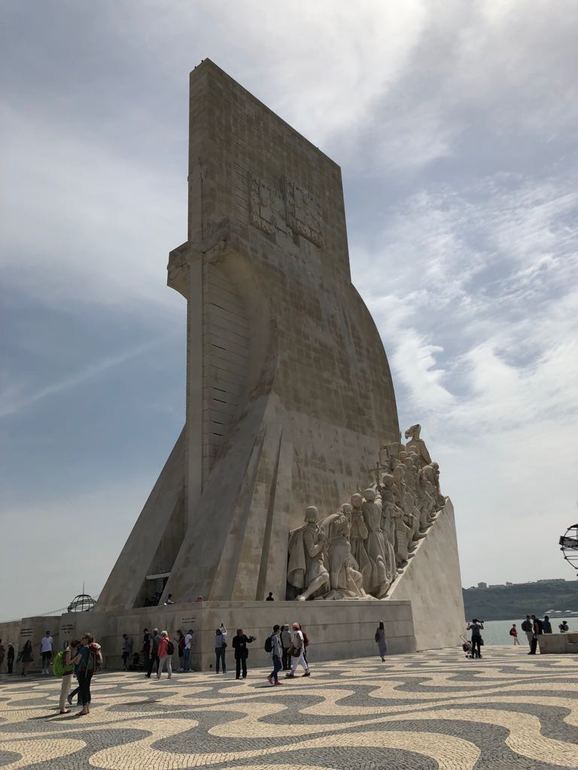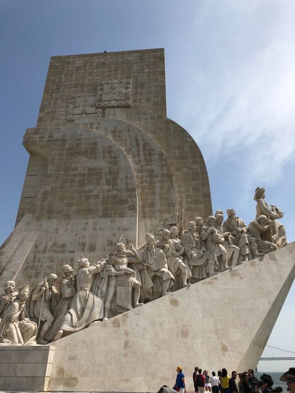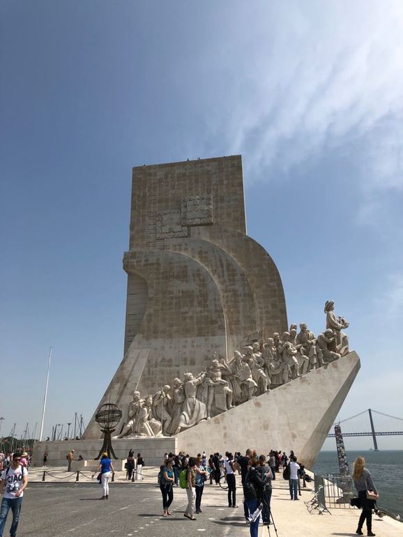 Далее по подземному переходу пошли к набережной реки Тежу и Памятнику Первооткрывателям. Он был открыт в 1960 году и представляет собой каравеллу высотой 52 метра, выполненную из белого известняка. Центральная фигура - Генрих Мореплаватель, а за ним еще 32 фигуры выдающихся личностей той эпохи.