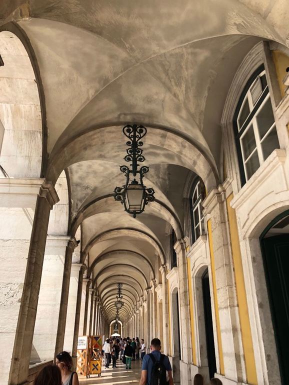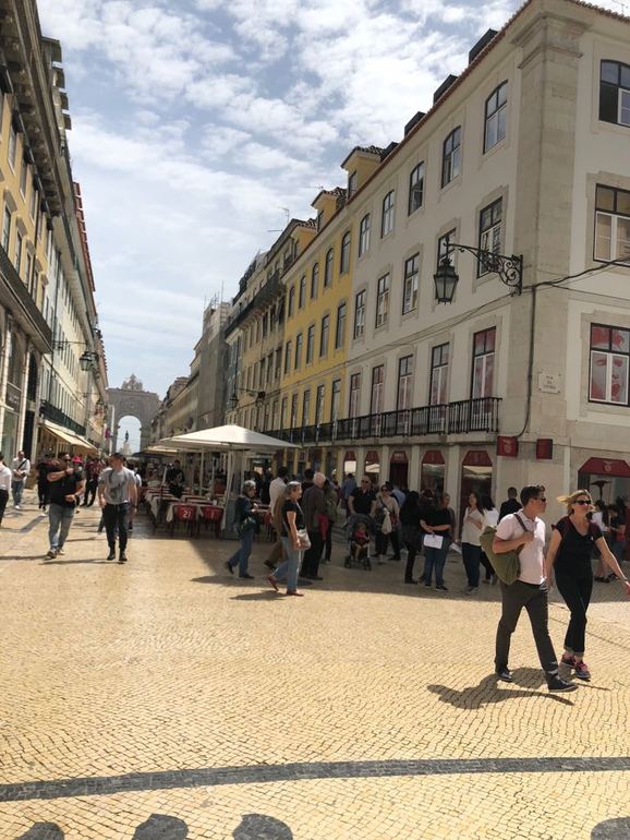 Свою прогулку в центре мы начали... с десерта!) Самым популярным десертом в Лиссабоне является Паштель-де-ната - корзиночка из слоеного теста с заварным кремом. Ежедневно выпекается и съедается просто невероятное их количество, и конечно мы не могли не попробовать) Для этого посетили одну из самых популярных кондитерских. Стоимость в районе 1 евро за штучку, есть нужно теплыми! Вкусно!))