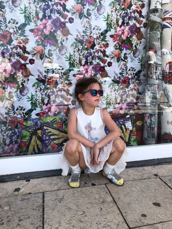 Пока друзья покупали клубнику (очень вкусную!), Аля устало позировала у магазина тканей)