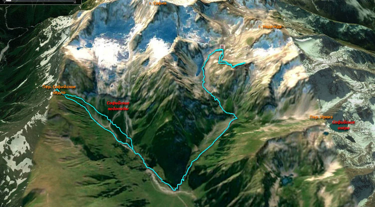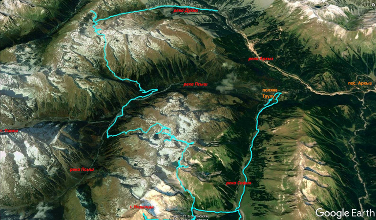 Нитка маршрута: Слияние р. Архыз, р. Дукка - долина р. Дукка - оз. Семицветное - пер. Аркасара (радиально) - пер. Аюлю - долина р. Белой - долина р. Псыш - оз. Кратерное - пер. Кара-Джаш - оз. Верхняя запятая - г. Мингикёль Баши (радиально) - Софийские озера - пер. Иркиз - дол. Ак-Айры - спартаковские, песчаные ночёвки - г. Надежда (радиально, не дошли) - дол. Ак-Айры - ледниковая ферма - Соф. водопады - пер. Софийское седло - долина р. София - поляна Таулу Аюлю 2850м, Кара-Джаш 3024м, Иркиз Кёль-Ауш) 2880м