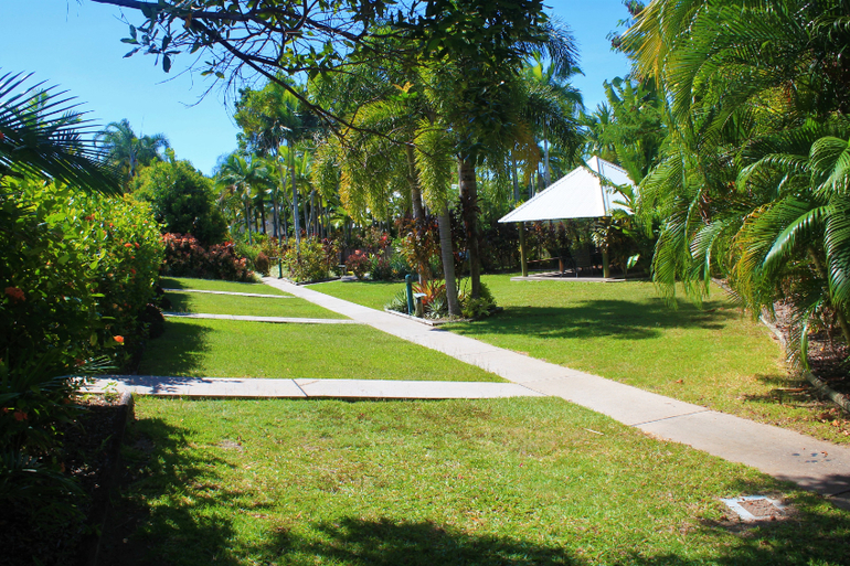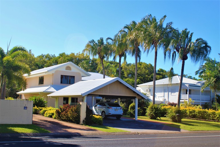 Бронируя дом в The Villas Palm Cove, мы исходили из того, что собираемся быть целыми днями на экскурсиях и нужно место просто ночевать, поэтому взяли самое дешевое на тот момент предложение букинга. А теперь внимание! Самое дешевое размещение выглядело так: отдельно стоящий дом с собственным небольшим патио и гаражом,