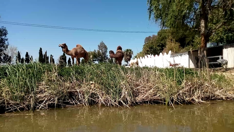 Про плыли мимо фермы, где разводят верблюдов и ослов: