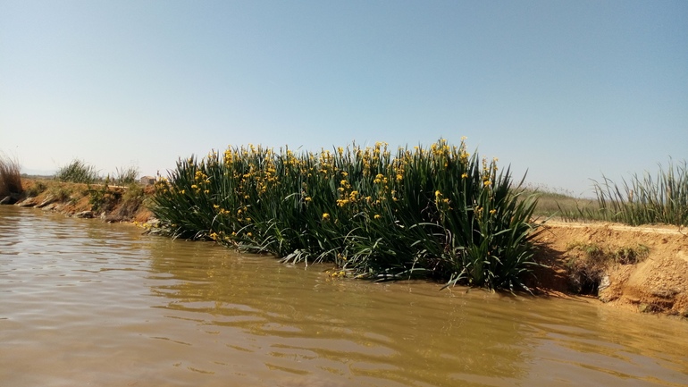 Наш рулевой был одновременно экскурсоводом и рассказывал много интересного про национальный парк Альбуферу и про озеро Albufera de Anna, куда мы направлялись по каналу. Нам раздали справочники с картой на обложке. Вот это озеро, синее пятно совсем рядом с морем.